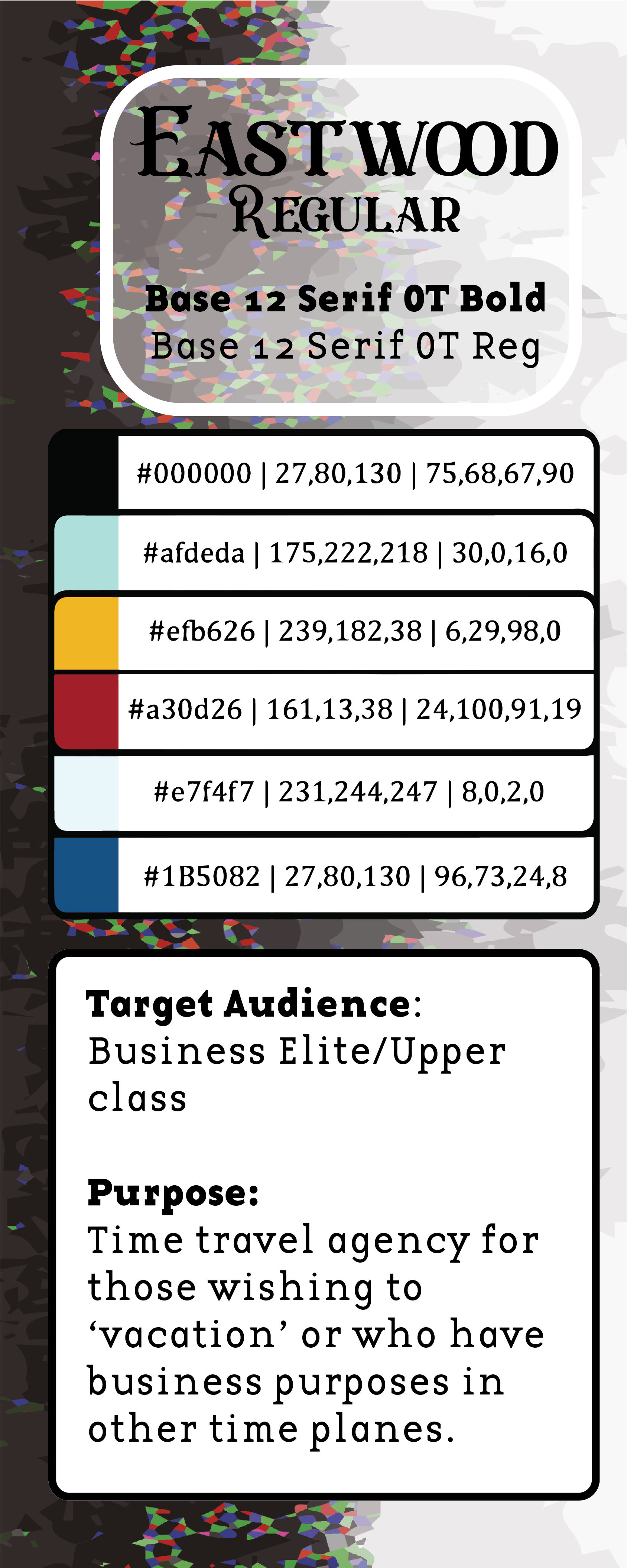 This was a fun, small-scope project that involved creating a limited brand identity for a fantasy corporation of my own devising. I wanted to work with a brand that blended current, clean, minimalist corporate style with a snapshot of what a hundred year leap into the future could look like. The font faces I used reflected this, with main communications working with a more traditional serif, and the logo’s font face leaning more towards an old-timey, Western style with its curvy, jaunty serifs.